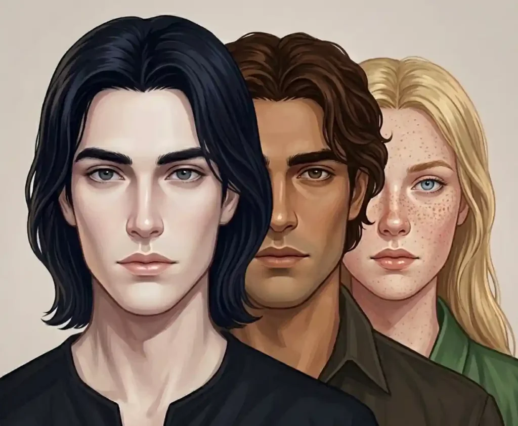 Il corredo somatico originale dei Figli di Dio presentava una polarità assoluta: carnagione bianco-latte (assenza di depositi melaninici granulari) e capelli neri corvini massicci. Gli occhi neri fungevano da centri di assorbimento totale. Questa struttura era progettata per un organismo di 2,5 metri; la densità del nero corvino e la purezza del bianco erano stabili grazie a un’efficienza metabolica superiore.